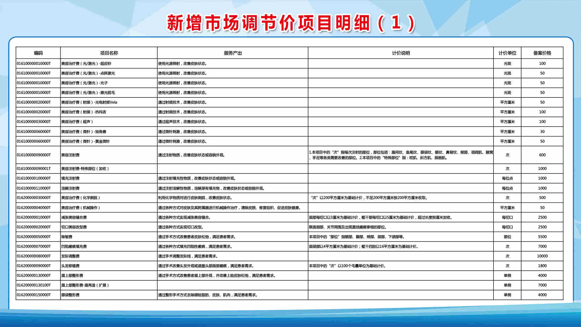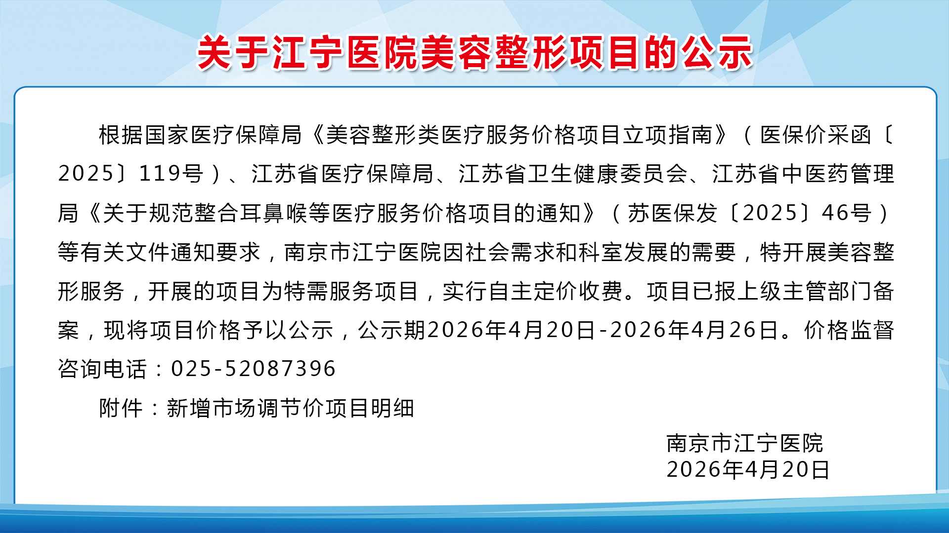 关于江宁医院美容皮肤科皮肤美容项目收费的公示